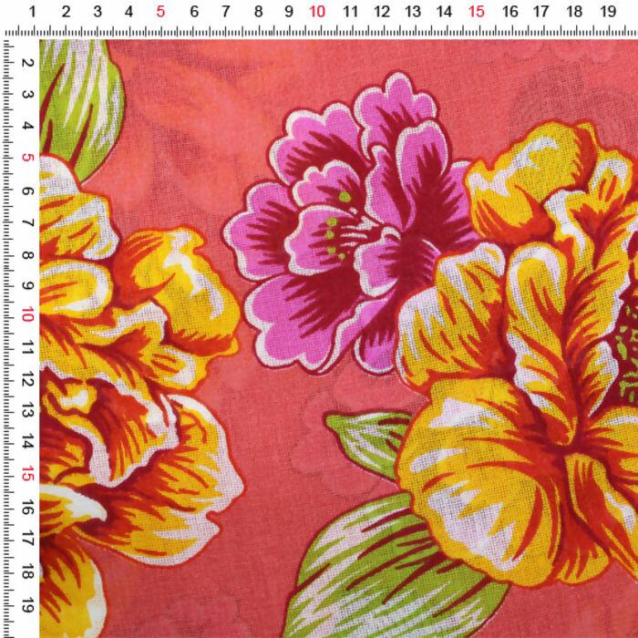Descrição Tecido Chita Juliana 2836 V.1 Floral Fundo Laranja