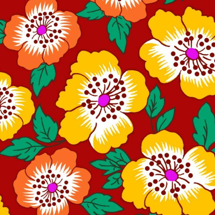 Descrição Tecido Chita Juliana 2851 V.1 Floral Fundo Vermelho