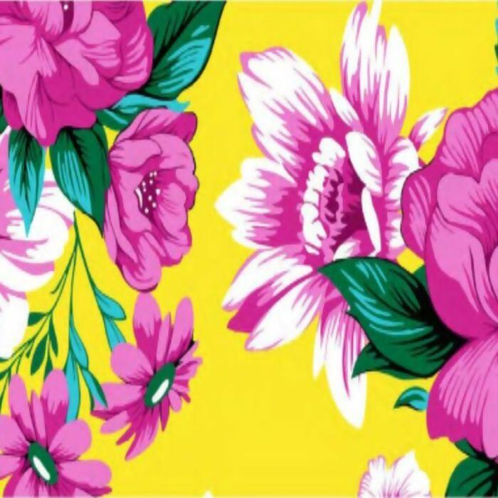 Descrição Tecido Chita Juliana 3158 V.2 Flor Fundo Amarelo
