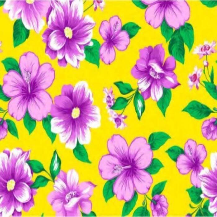 Descrição Tecido Chita Juliana 3162 V.2 Flores Roxas Fundo Amarelo