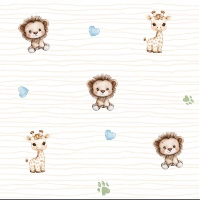 Descrição Tecido Flanela Digital Safari Leão e Girafa