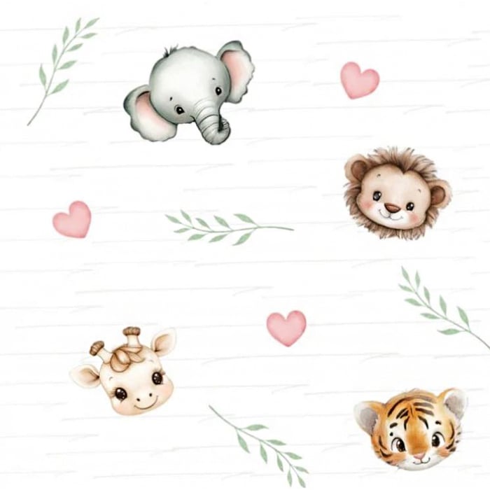 Tecido Fralda Digital Safari Rostinho Coração Rosa