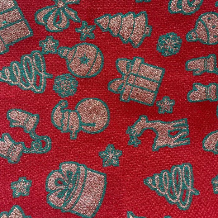 Descrição Tecido Jacquard Lurex Natal Vermelho