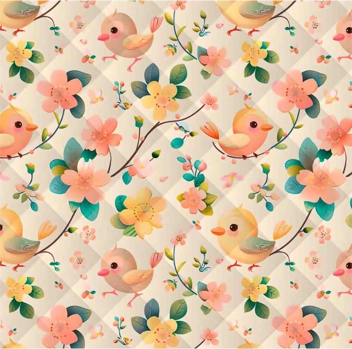 Descrição Tecido Matelassê Floral Passarinhos