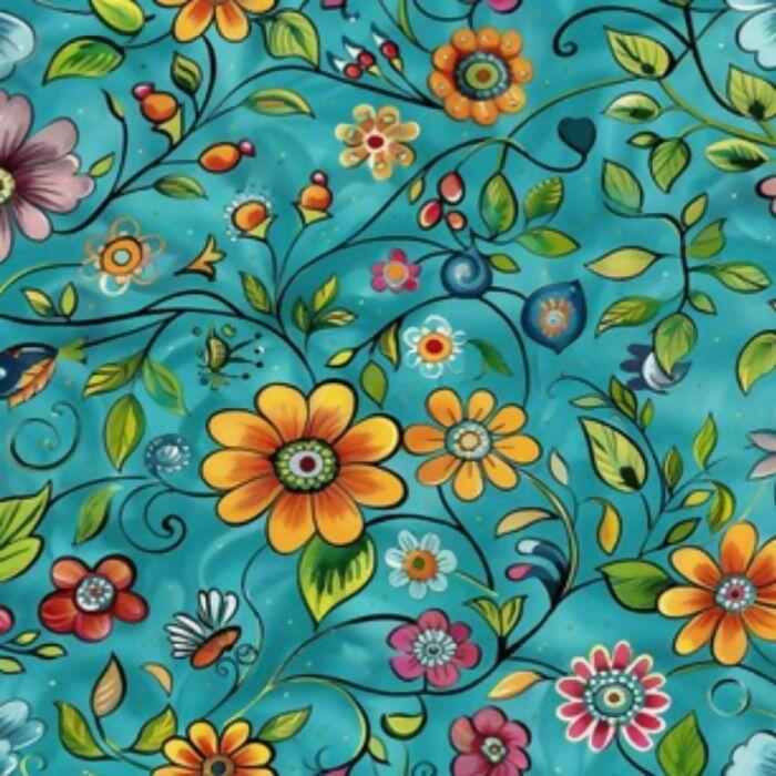 Tecido Sarja Digital Flores Azul Piscina