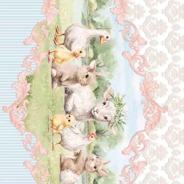 Descrição Tecido Sarja Digital Hidrorrepelente Páscoa Ovelhas e Patos