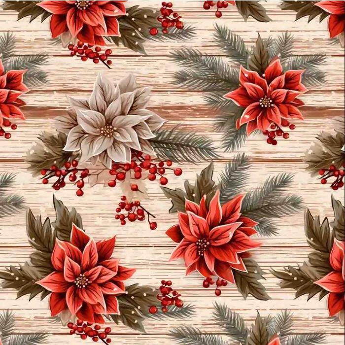 Tecido Sarja Hidrorrepelente Digital Hibisco Fundo Madeira
