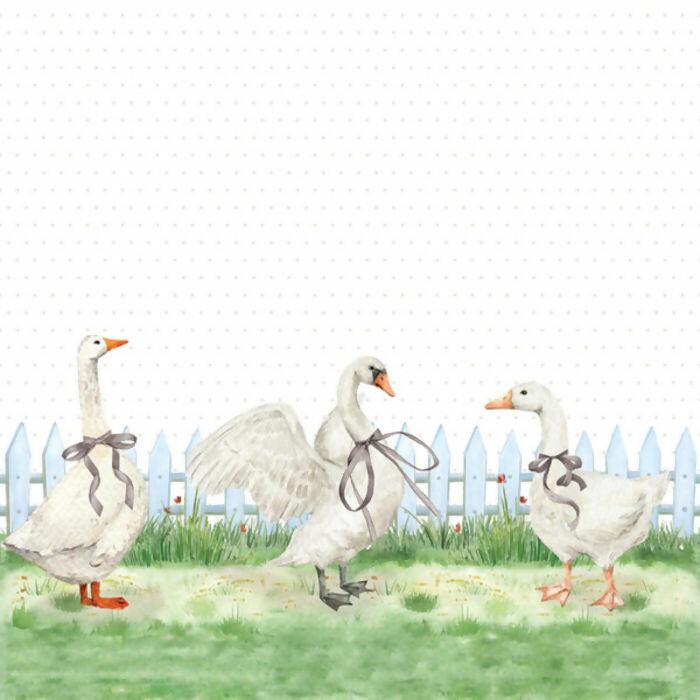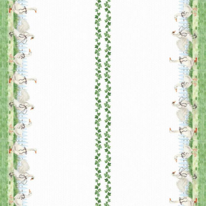 Descrição Tecido Sarja Leve Digital Barrado Toalha de mesa Gansos