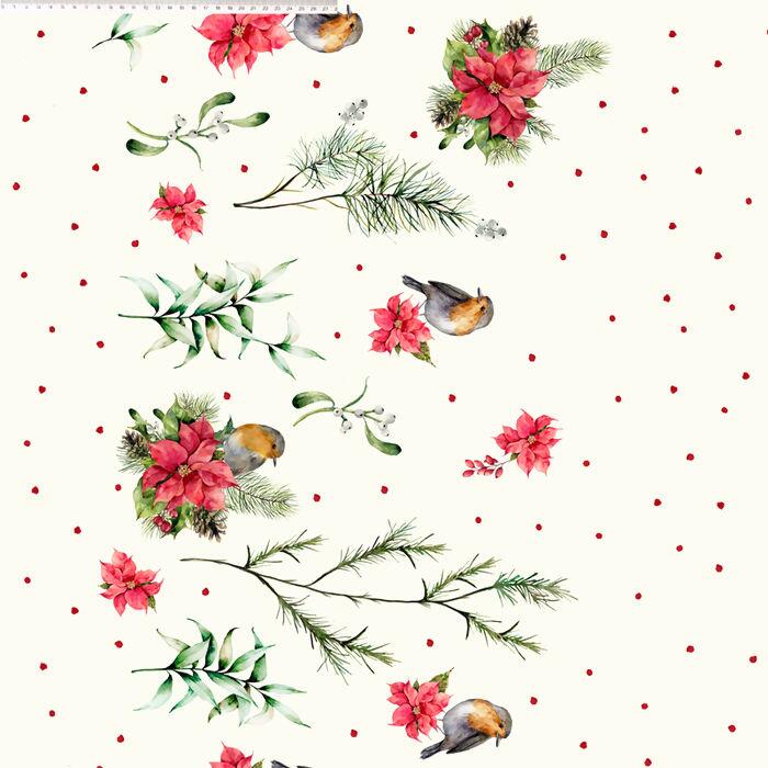 Descrição Tecido Tricoline Natal Poinsetta com Pássaro