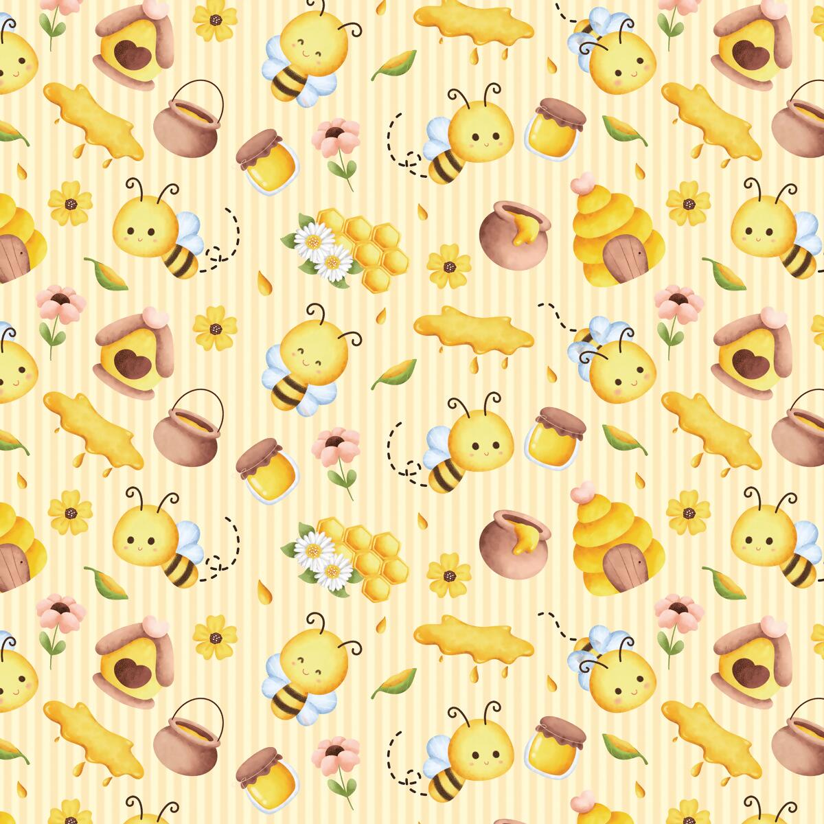 Descrição Tecido Tricoline Abelha Mel Fundo Amarelo