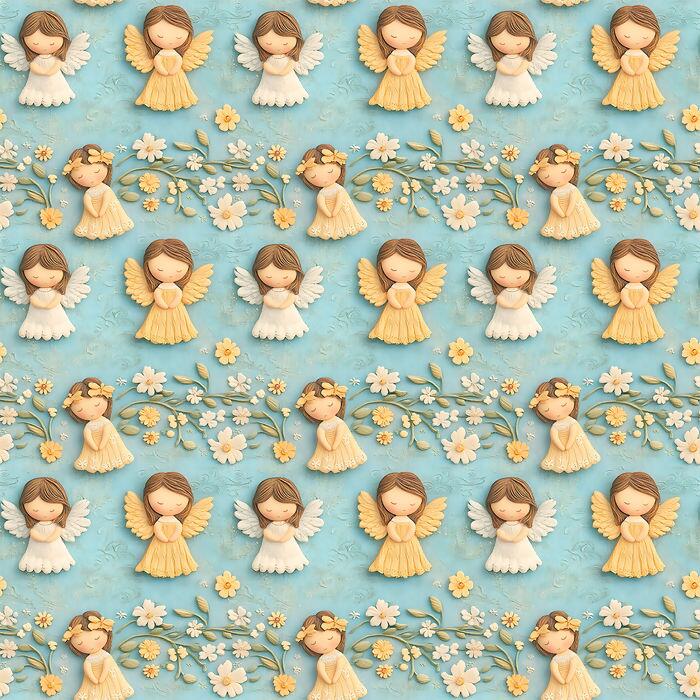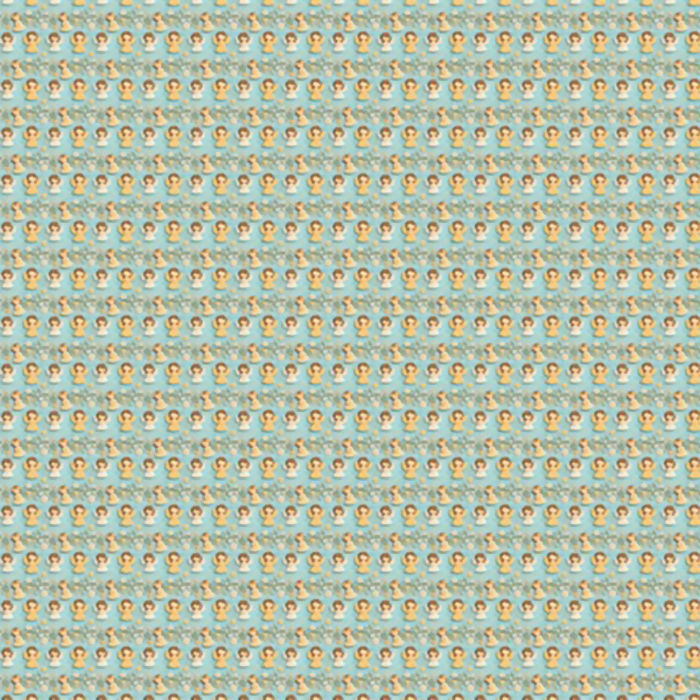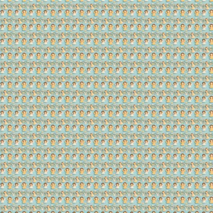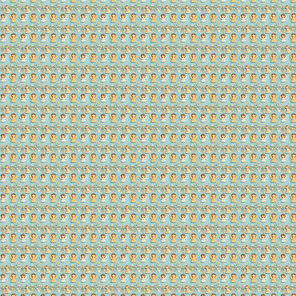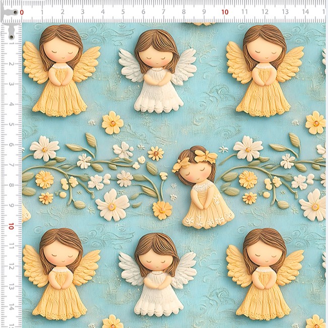 Descrição Tecido Tricoline Anjos e Ramos Fundo Azul