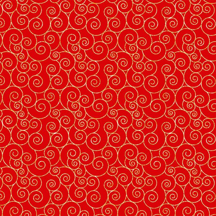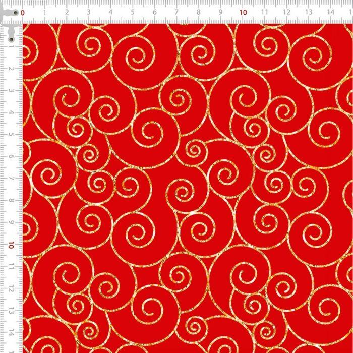 Tecido Tricoline Arabescos Dourados Fundo Vermelho