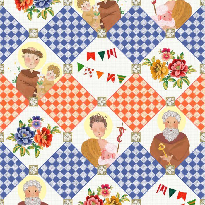 Descrição Tecido Tricoline Arraiá Santos Coloridos