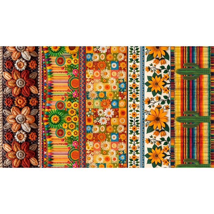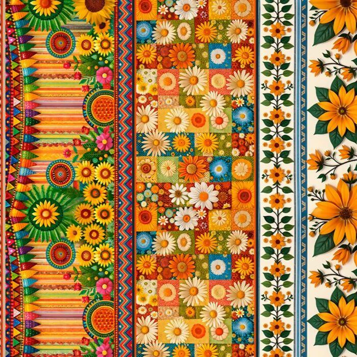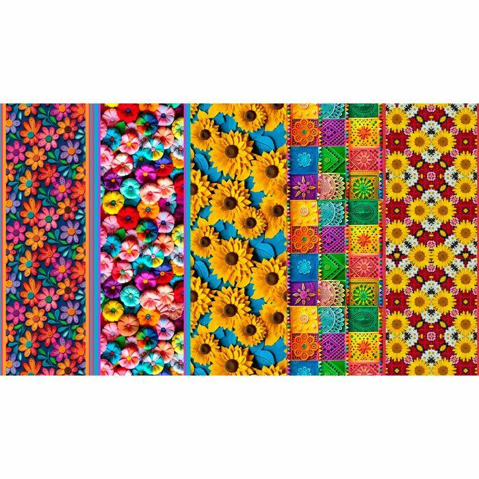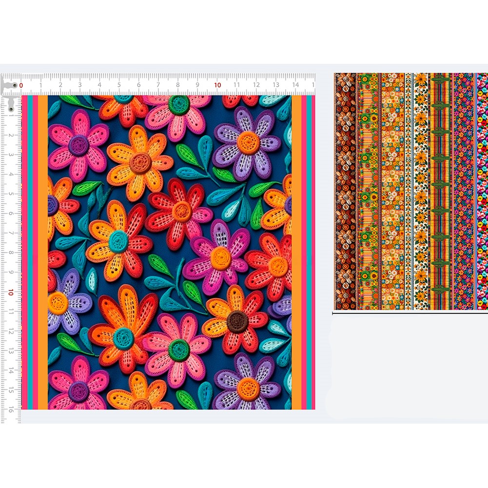 Descrição Tecido Tricoline Barrado Junino Colorido Floral