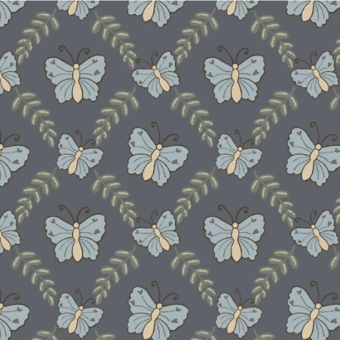 Tecido Tricoline Borboletas Fundo Azul Marinho