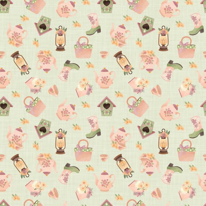 Tecido Tricoline Botas e Cestas Fundo Verde