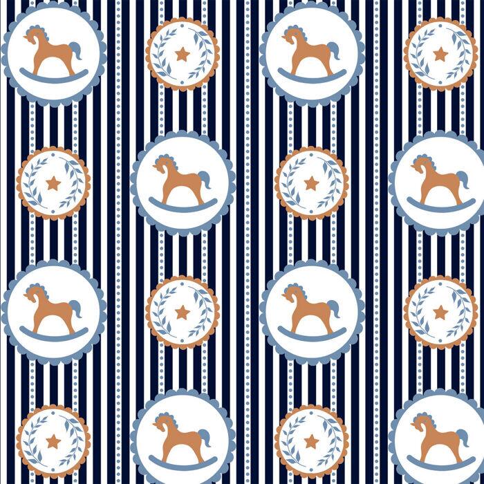 Descrição Tecido Tricoline Cavalo Balanço Listrado Azul Escuro