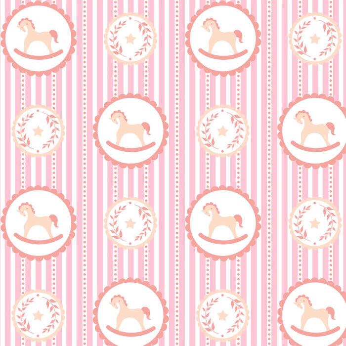 Descrição Tecido Tricoline Cavalo Balanço Listrado Rosa