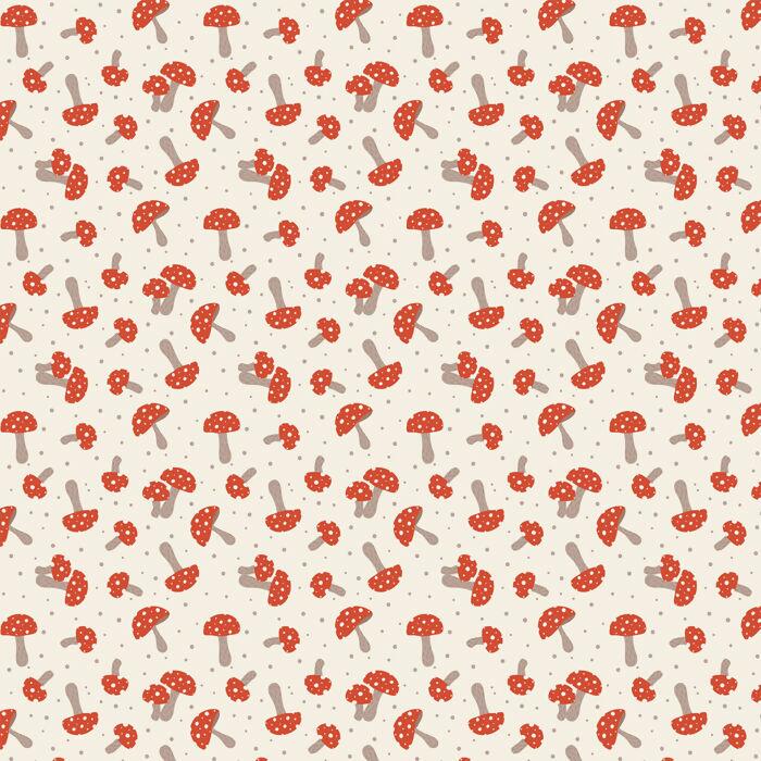 Descrição Tecido Tricoline Cogumelos Fundo Poá
