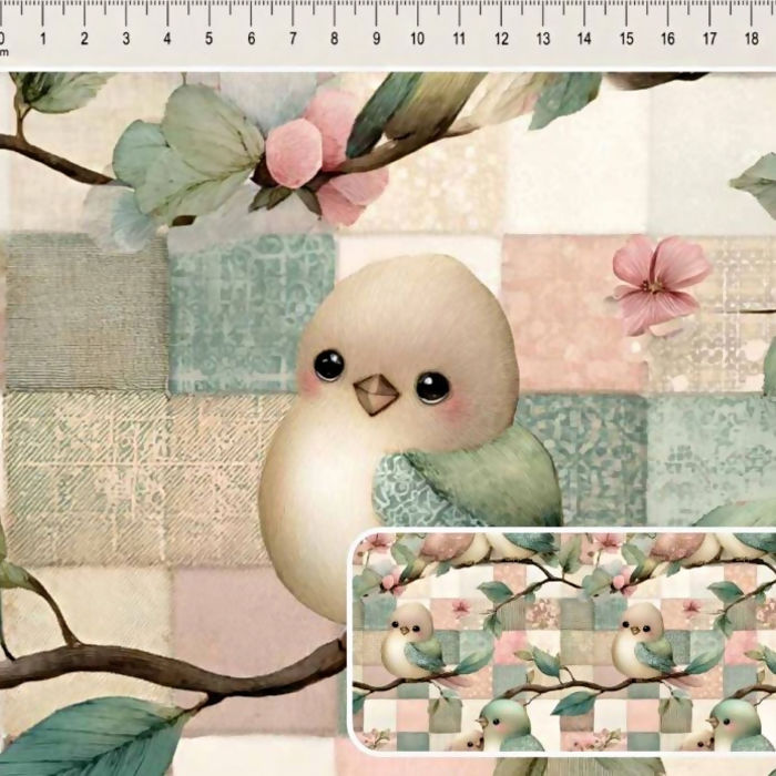 Descrição Tecido Tricoline Digital Bird Patch Passarinho Grande