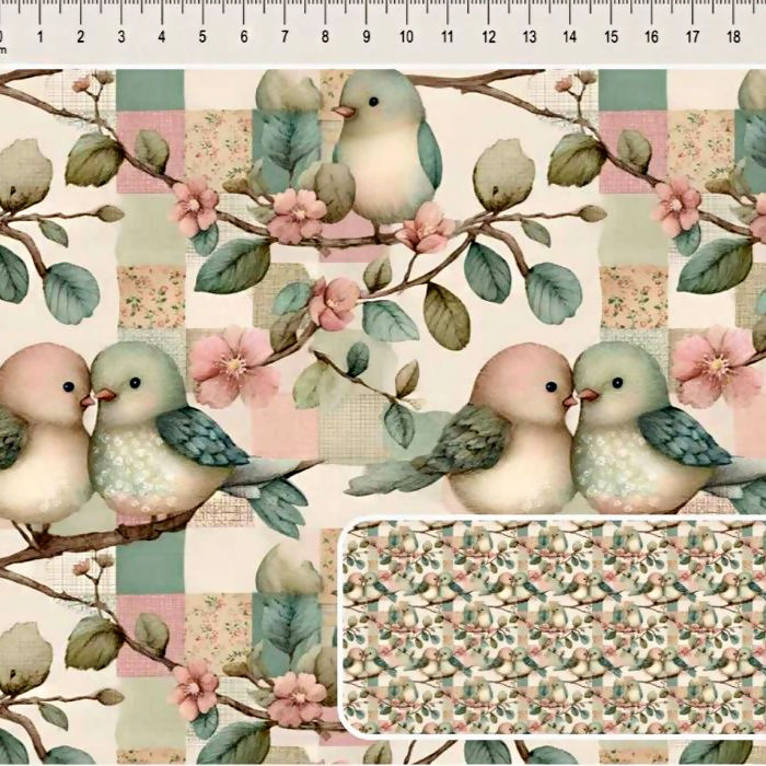 Descrição Tecido Tricoline Digital Bird Patch Passarinho Pequeno