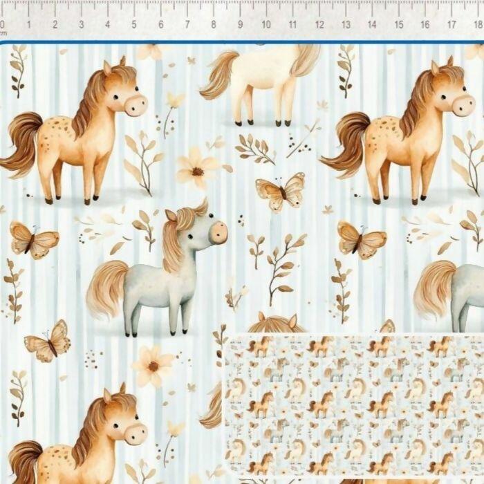 Tecido Tricoline Digital Cavalinhos Fundo Listrado