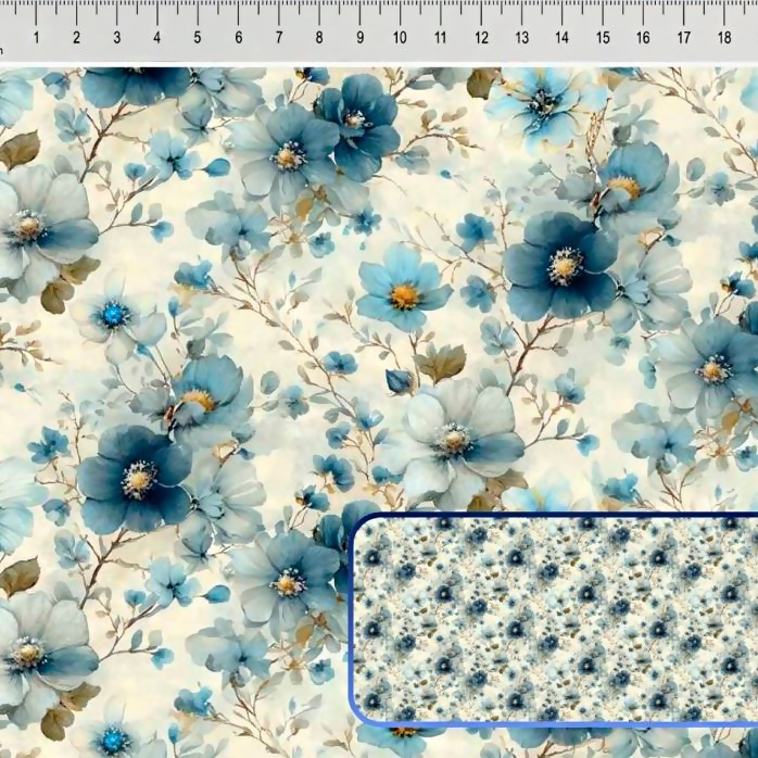 Tecido Tricoline Digital Le Bleu Floral Menor Fundo Bege