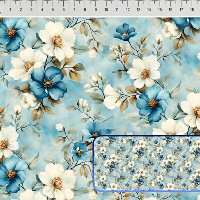 Descrição Tecido Tricoline Digital Le Bleu Floral Menor