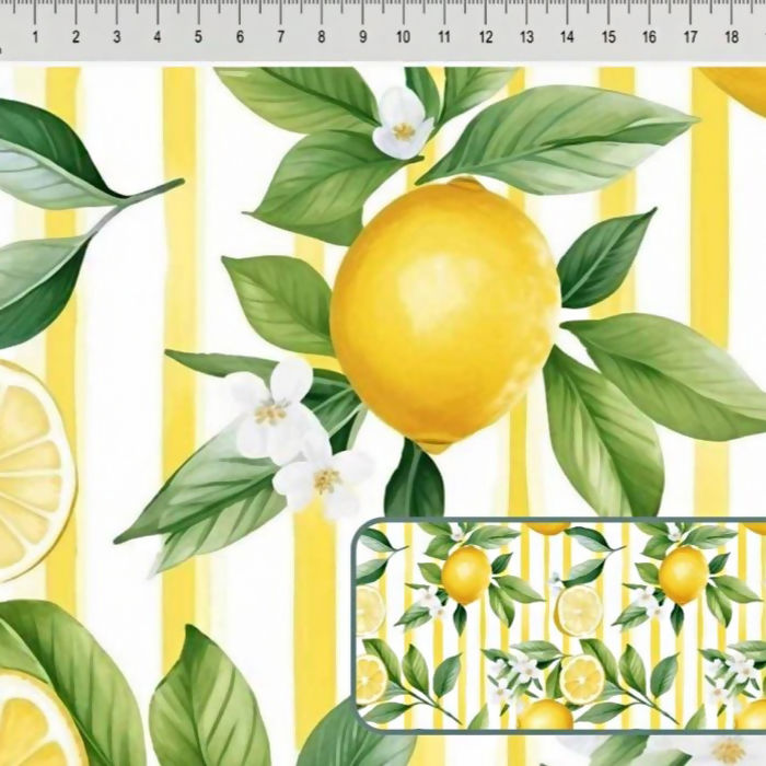Descrição Tecido Tricoline Digital Limão Siciliano Listras