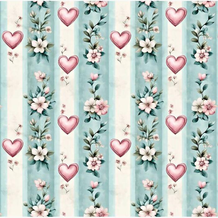 Tecido Tricoline Digital Romance Coração Listrado