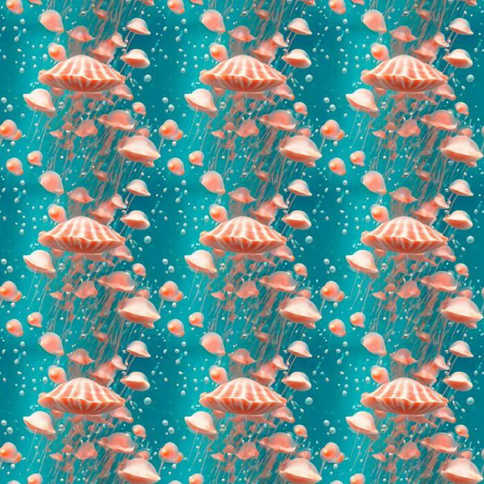 Descrição Tecido Tricoline Digital 3D Água Viva Fundo Azul
