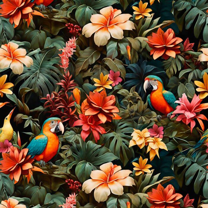 Descrição Tecido Tricoline Digital 3D Arara Floresta