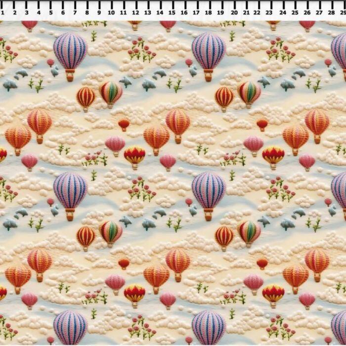 Descrição Tecido Tricoline Digital 3D Balões e Nuvens