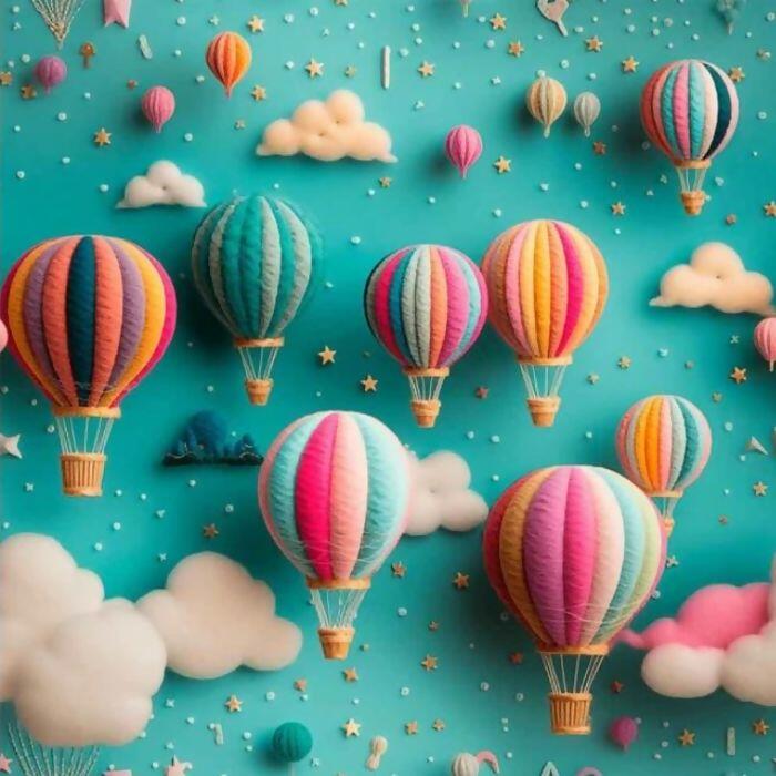 Descrição Tecido Tricoline Digital 3D Balões Tiffany