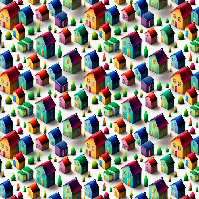 Tecido Tricoline Digital 3D Casinhas Coloridas