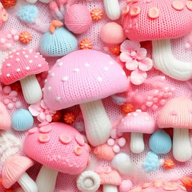 Descrição Tecido Tricoline Digital 3D Cogumelos Rosa Claro