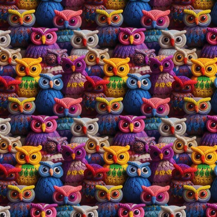 Descrição Tecido Tricoline Digital 3D Corujas Crochê