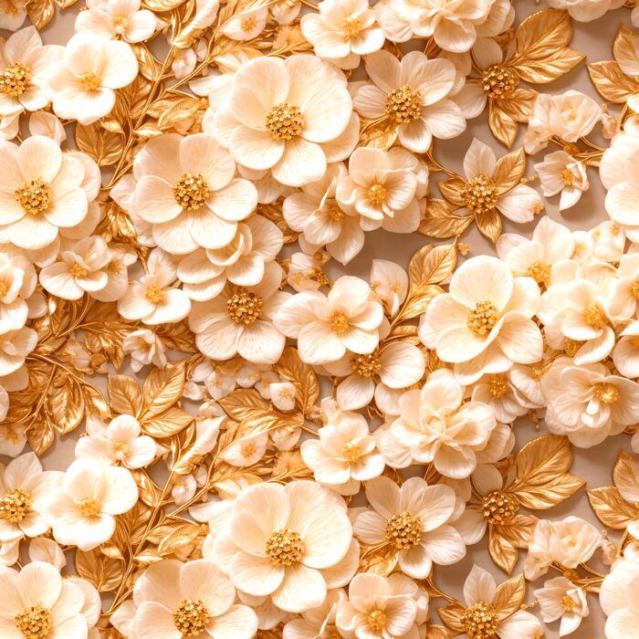 Descrição Tecido Tricoline Digital 3D Floral Dourado