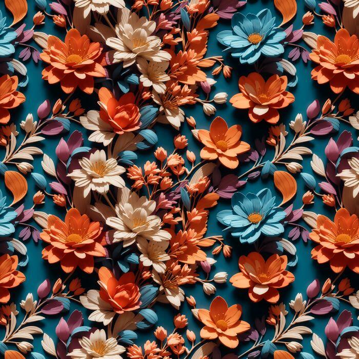 Descrição Tecido Tricoline Digital 3D Floral Fundo Azul