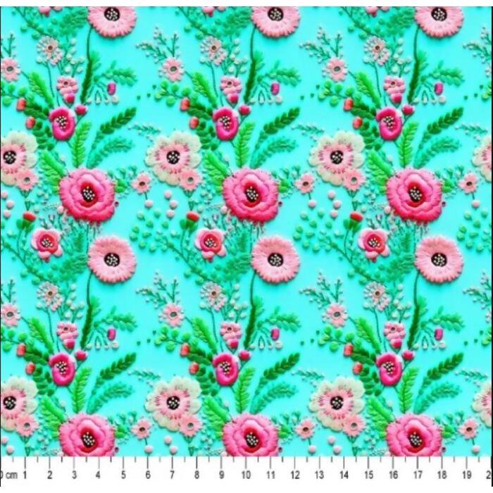 Descrição Tecido Tricoline Digital 3D Floral Fundo Verde