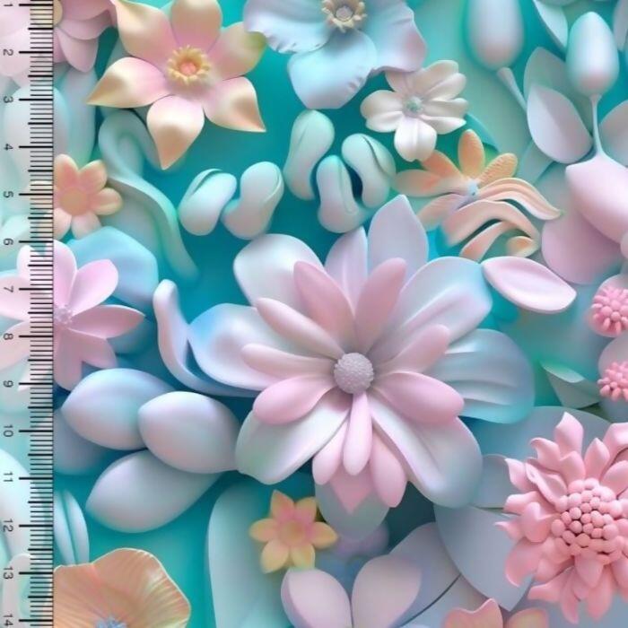 Descrição Tecido Tricoline Digital 3D Floral Tiffany
