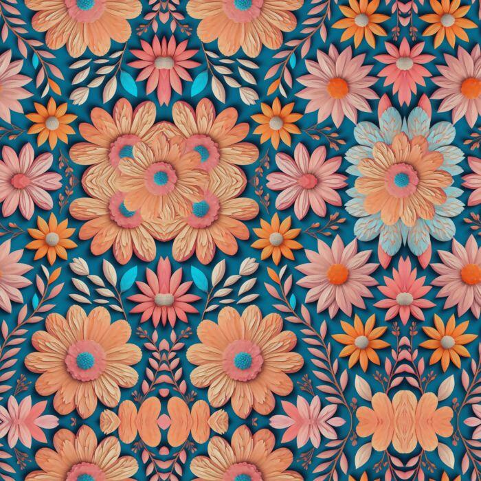 Descrição Tecido Tricoline Digital 3D Flores Diversas Fundo Azul