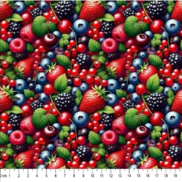 Descrição Tecido Tricoline Digital 3D Frutas Diversas