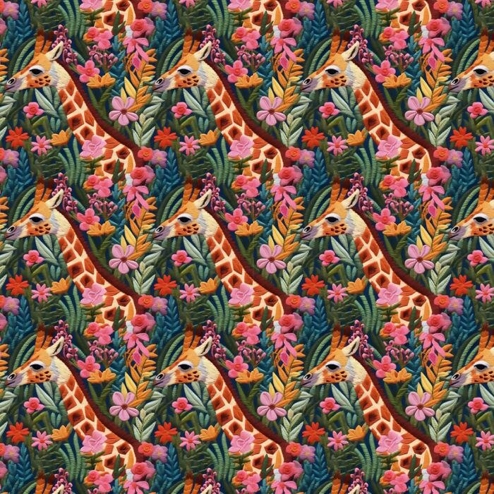 Descrição Tecido Tricoline Digital 3D Girafas Bordadas