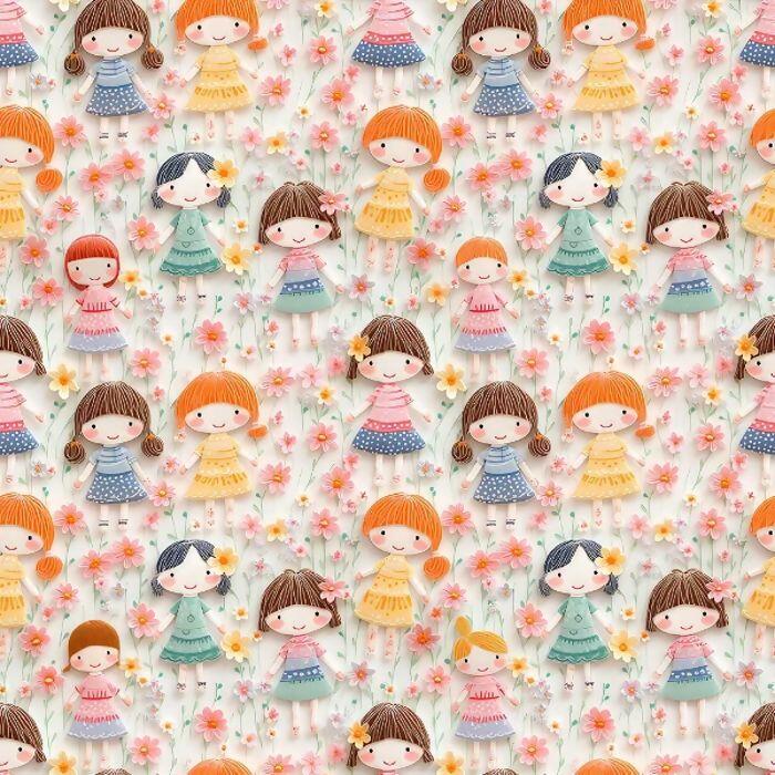 Descrição Tecido Tricoline Digital 3D Meninas Bordadas 4