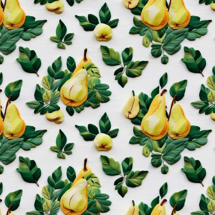 Descrição Tecido Tricoline Digital 3D Peras Fundo Branco
