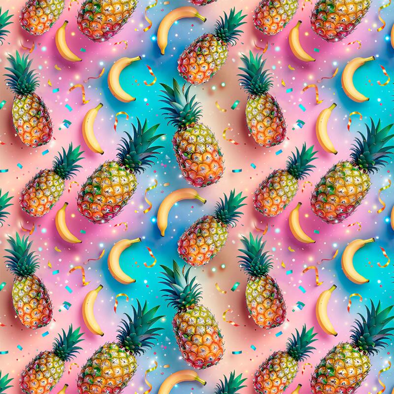 Descrição Tecido Tricoline Digital Abacaxi e Banana