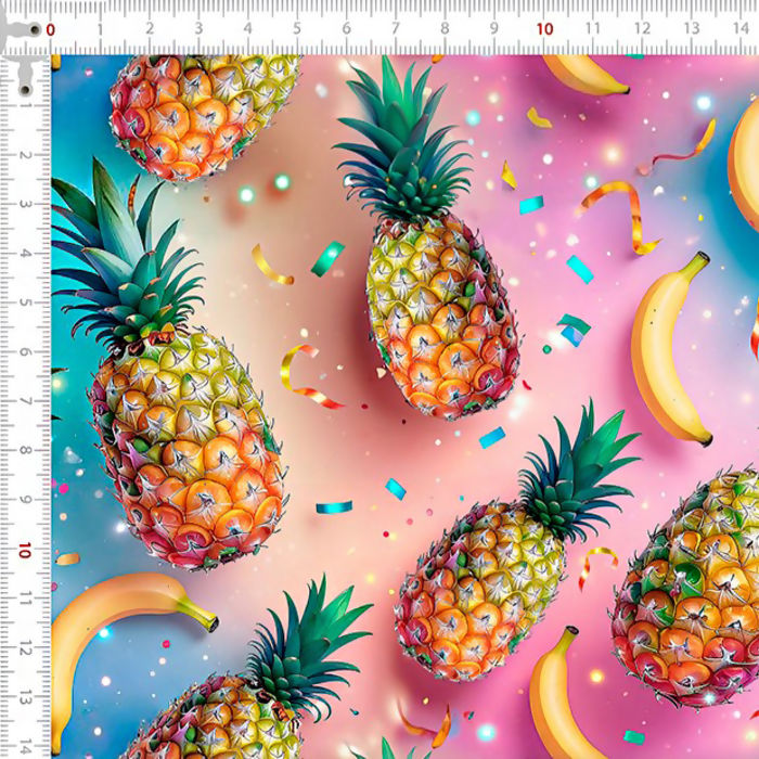 Tecido Tricoline Digital Abacaxi e Banana