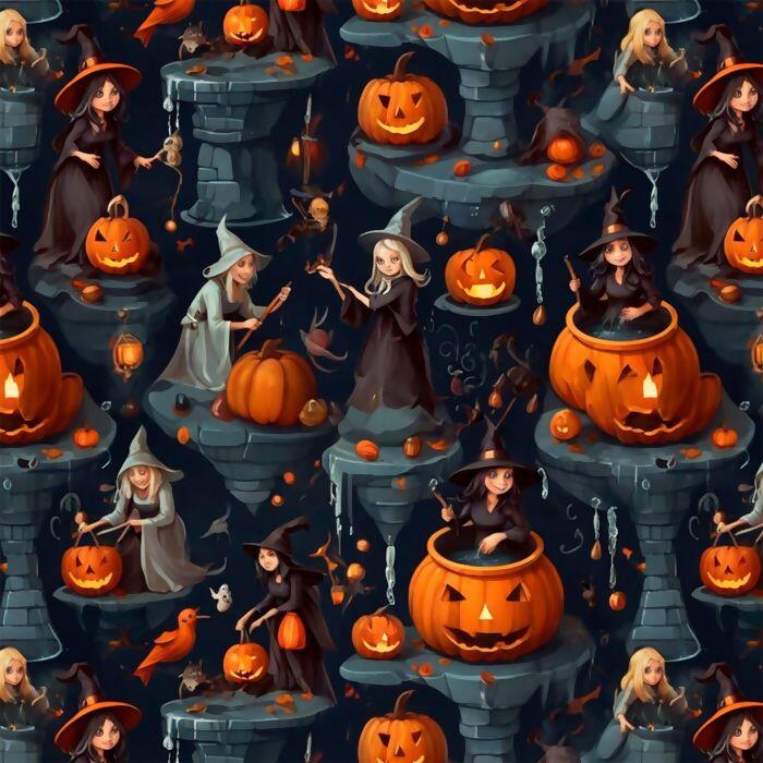 Descrição Tecido Tricoline Digital Abóbora e Bruxa