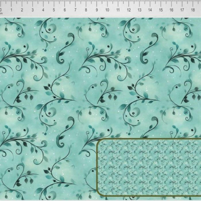 Tecido Tricoline Digital Acquared Arabescos Fundo Azul